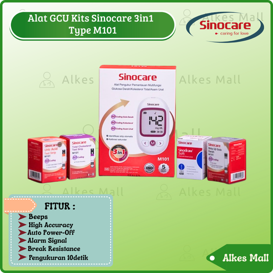 Alat 3in1 GCU Cek Gula Darah, Kolesterol & Asam Urat Tanpa Koding(Tanpa Chip) SINOCARE type M101